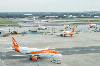 March 18, 2018 Alexandre Rotenberg Airbus A320 airplanes belonging to low cost airliner, easyJet, on tarmac at London Gatwick’s North Terminal