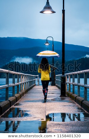 young-woman-yellow-raincoat-standing-450w-1158401320
