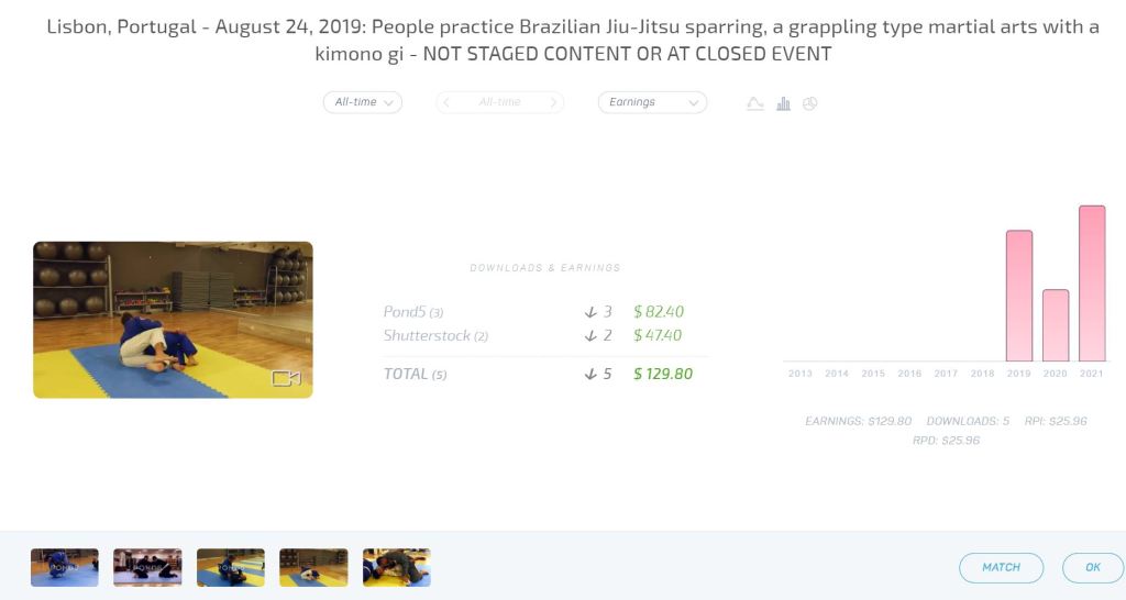 The uniqueness is evidenced on Pond5 by the search “Brazilian Jiu-Jitsu” which yielded just 82 hits and just 40 on SS, both heavily featuring those clips within the first results.