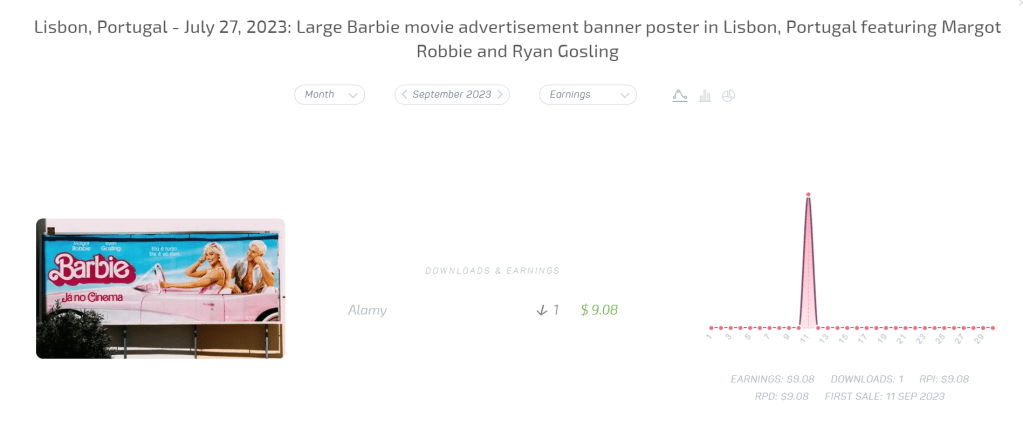 Terrible month at Alamy at just $42 after a few good months. Just two sales to report: