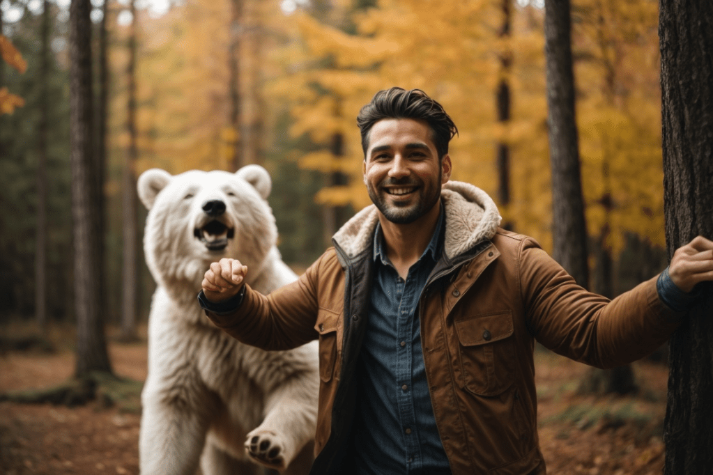 The image of the bear behind the model should be a big seller. A polar bear in a forest! OMG