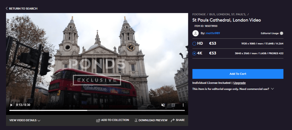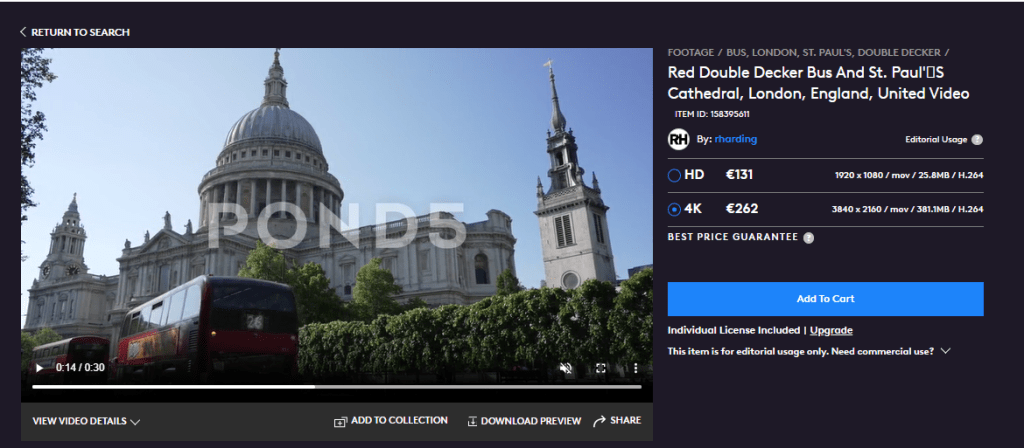 I do agree with Pond5 that the previous pricing structure wasn’t working. Acting as a customer, let’s say that I’m looking for a 4K video of a red London double-decker bus passing in front of St. Paul’s Cathedral.