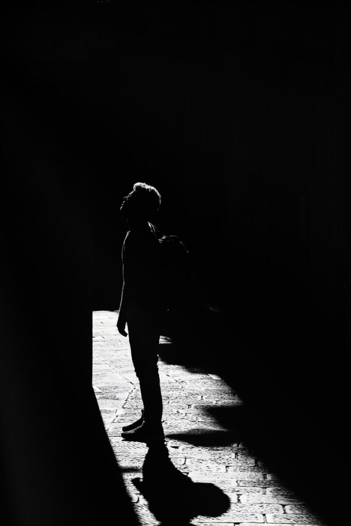 • Psychological tension, often with solitary, introspective figures in shadowy environments.